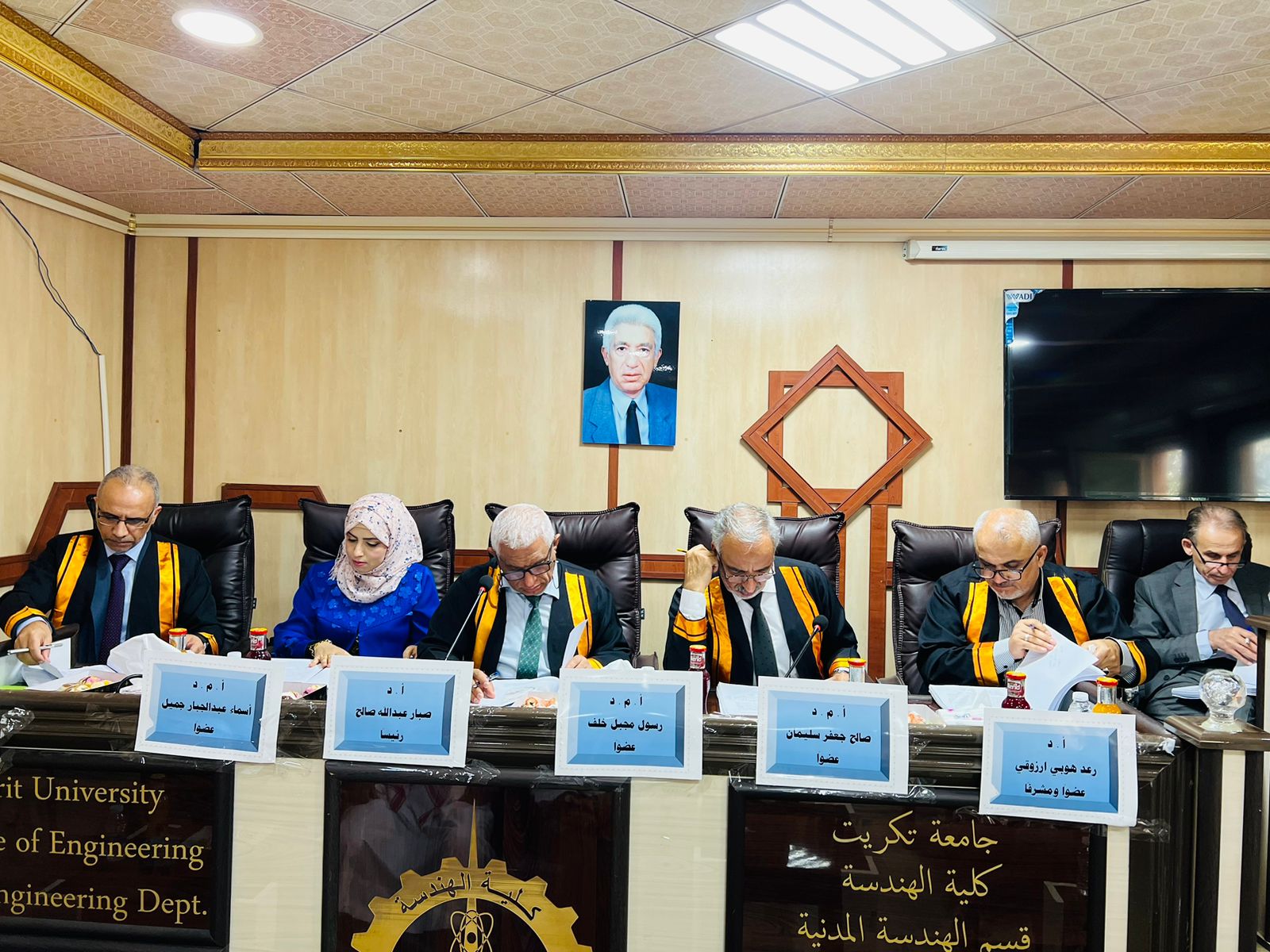 نوقشت يوم الثلاثاء الموافق 7-5-2024 وعلى رحاب قاعة مناقشات عمادة كلية الهندسة وبحضور السيد عميد الكلية الاستاذ المساعد الدكتور خالد حمود مضحي الجنابي اطروحة الدكتوراه للباحث ( عيدان ابراهيم غضبان ) / قسم الهندسة المدنية والموسومة Investigating The Reservoir Storage Change in Makhoul Dam Due to Accumulated Sediments and Evaporation
