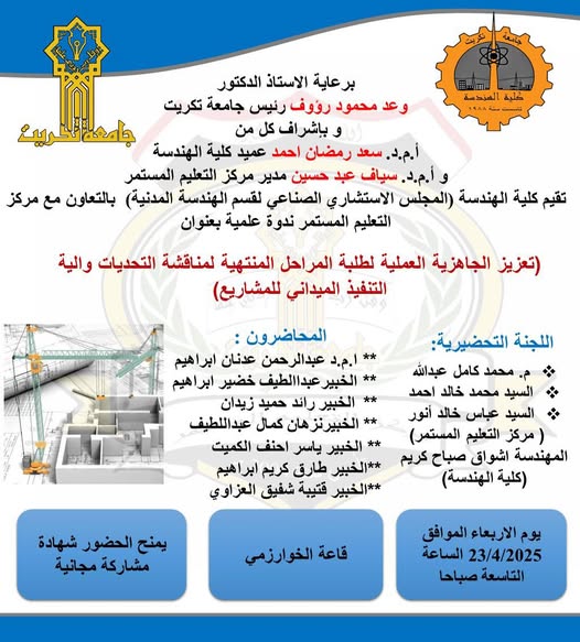 3. تطبيق فحوصات الجودة: يحرص الخريجون على تنفيذ إجراءات وفحوصات ضبط الجودة بدقة لضمان الالتزام بالمواصفات الفنية المطلوبة.